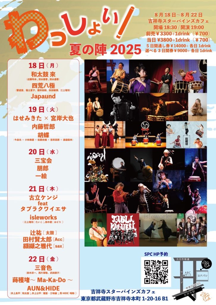 近々で言えば、8月19日に吉祥寺スターパインズカフェにて、「わっしょい!〜夏の陣 2025〜」に胡蝶として出演しますので、よかったら見に来てくださいませ。